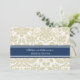 Spezielle Probe Abendessen Party Einladungen in modernem und elegantem, braunem Taupe Sand, dunkelblau und weiß schick und klassisch floralen Damast Vintagen Muster. Personalisieren Sie den Text, um eine einzigartige Einladung für Ihre Hochzeit Probe Abendessen. Kontaktieren Sie uns, um eine Farbänderung anzufordern. Erhältlich in vielen passenden Hochzeitsartikeln.
