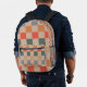 Blue Beige Orange Brown Checkered Gingham Pattern Bedruckter Rucksack