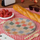 Blue Beige Orange Brown Checkered Gingham Pattern Pappteller