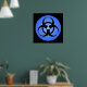 Schwarzes Biogefährdung-Symbol auf kreisblauem Hintergrund.