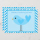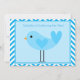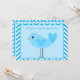 Moderner Blue Bird mit einem blauen Schwanz auf blauem Zickzack Hintergrund. Die perfekte Babydusche für Mama, ein Junge zu sein.