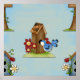 Ein blauer Vogel vor einem niedlichen Vogelhaus. Dieses Design sieht wirklich effektiv aus auf diesem Poster