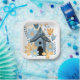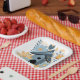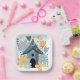 Ein niedliches Design eines kleinen blauen Vogelhauses, umgeben von Blume