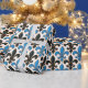 Blue Black Baroque Fleur-de-lis Pattern Design Geschenkpapier