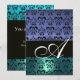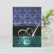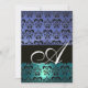 BLUE BLACK DAMASK MONOGRAMM, hell weiß Einladung