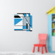 Ein abstraktes, geometrisches Design ist in Form von hellblau, mittelgrau und schwarz auf weißem Hintergrund für einen mosaikähnlichen Look gehalten, inspiriert durch den modernen Designstil des Mitteljahrhunderts.