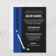 Moderne blauen und schwarzen Hockey Thema Bar Mitzvah Einladungen. Persönlich für Ihre Veranstaltung.