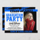 Lade your family and friends with this Blue Black School Colors Foto Graduation Einladung ein. Personalize with the party details, your graduate's foto and class year. This school colors lädt feys of school spirit with blue and black accents ein.