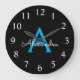 Blue Black Script Giron Monogram Name Große Wanduhr