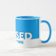 Modernes Blau BLESSED Im Namen Jesu Christliche Tasse, mit dem Wort BLESSED in WEISSER Typografie und IN JESUS' NAME in BLAU. Alle Texte sind KUNSTBAR, sodass Sie Ihren eigenen Text erstellen können und Ihre Lieblings-Scripturreferenz hinzufügen können. Diese Tasse wäre ein großartiges Geschenk für Weihnachten, Geburtstage, Muttertag, Vatertag, etc. Andere Glitzer-Varianten sind verfügbar.