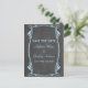 Elegante und trendige Chalkboard-Save the Date Postcard mit Chalkboard-Look Hintergrund und extravagantem Deko-Ränder aus Swirl und Blatt in hellblau. Einfach anpassen, einfach Ihre Hochzeitsdetails hinzufügen. Klicken Sie auf "Anpassen", um weitere Personalisierungsoptionen zu erhalten.