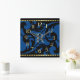 Blue Blüh Design Gold Border mit Monogram Quadratische Wanduhr