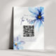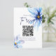 Elegantes Blumendesign mit modernem handgeschriebenem Style Script, QR CODE und Aquarellblau Blumen auf weißem Hintergrund. Der Text kann leicht für ein einzigartiges Design für Ihren besonderen Tag personalisiert werden.