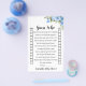 Blue Blumen raten Wer Baby Dusche Spielkarte Flyer