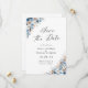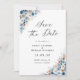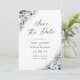 Blue Boho Floral Save the Date Card. Dieses stilvolle und elegante Bridal Shower Invitation verfügt über eine wunderschöne handbemalte Aquarell Blue Boho Floral. Finden Sie passende Artikel in der Blue Boho Floral Collection.