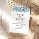 Blue Boho Floral Save the Date Card. Dieses stilvolle und elegante Bridal Shower Invitation verfügt über eine wunderschöne handbemalte Aquarell Blue Boho Floral. Finden Sie passende Artikel in der Blue Boho Floral Collection.