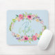 Blue Boho Pastell Floral Name Script Monogram Mousepad