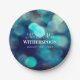 Blue Bokeh helle Effekt Papier Hochzeitsfeier Teller. Individuelles Foto-Design für Hochzeitsfeier, Brautparty, Verlobung, Jubiläum, Junggeselinnen-Abschied und vieles mehr. Personalisierte Mr. und Mrs. name Initial für Braut und Bräutigam oder frisch gezapft. Elegante Typografie-Vorlage. Teller mit Datum veräußern. Ideal für Innen- und Außenanlagen.