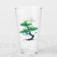 traditionelle Aquarellkunst eines blauen Bonsai-Baumes mit leuchtend grünen Blätter auf einem Trinkglas