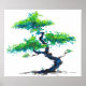 eine traditionelle Aquarellbild eines Bonsai-Baumes in grün und blau als Plakatdruck