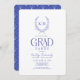 Diese schicke Graduiertenparty mit weißem Hintergrund mit einem Monogramm, umgeben von einem botanischen Wappen und einem blau-blauen Bogen. Die Rückseite weist einen blauen Hintergrund mit geometrischen Mustern auf. Personalisieren Sie es für Ihre Bedürfnisse. In meinem Geschäft finden Sie passende Produkte.