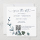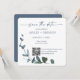 Blue Botanical Leaf Save the Date w/QR Code+Image Einladung