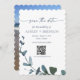 Blue Botanical Leaf Save the Date w/QR + Image Einladung