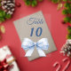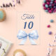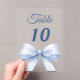 Personalize and your table numbers one by one. A clear background decorated with a large light blue colored bow.