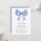 Feiern Sie stilvoll mit unserer eleganten Blue Bow Baby Shower Invitation, die sich perfekt für ein charmantes Coquette Baby Shower Thema. Diese Einladung mit einem zarten Bogen-Design ist vollständig anpassbar und einfach zu bestellen. Ideal, um einen raffinierten und süßen Ton für Ihre Babydusche zu setzen, verlasst diese hochwertige Coquette Baby Shower Invitation Ihren Gästen einen bleibenden Eindruck.