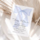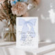 Feiern Sie die bevorstehende Ankunft eines Babys mit dieser Blue Bow Baby Shower Einladung! Dieses zeitlose Design mit einem wunderbar illustrierten Bogen, sanften Pastelltönen und eleganter Typografie ist der ideale Set für ein anspruchsvolles und unvergessliches Fest. Personalisieren Sie es mit Ihren Veranstaltungsdetails für eine einmalige Touch!