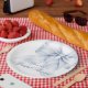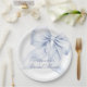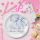 Diese elegante Papierplatte zeichnet sich durch einen zauberhaften blauen Bogen aus, der perfekt für ein "etwas blaues" Brautparty geeignet ist. Es ist in sanften pastellfarbenen Aquarellen gestaltet und verbindet romantische handgeschriebene Skripte mit trendigen whimsical Elementen. Ideal für ein staubblaues Brautparty.