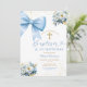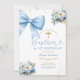Blue Bow Coquette Girl Baptism and Birthday Floral Einladung