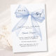 An elegant white background, decorated with a large blue bow with pearls. Personalize and add a name and party details.