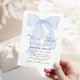 Feiern Sie die bevorstehende Ankunft eines Babys mit dieser Blue Bow Baby Shower Einladung! Dieses zeitlose Design mit einem wunderbar illustrierten Bogen, sanften Pastelltönen und eleganter Typografie ist der ideale Set für ein anspruchsvolles und unvergessliches Fest. Personalisieren Sie es mit Ihren Veranstaltungsdetails für eine einmalige Touch!