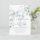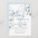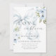 Feiern Sie die zukünftige Braut mit dieser eleganten Braudusche "Liebe in Bloom". Mit einem zarten, floralen Aquarell-Design in sanften Blautönen strahlt diese Einladung Charme und Eleganz aus. Ein dunkelblauer Bogen und eine anmutige Schriftzeichen fügen eine romantische Touch hinzu, die sich ideal für ein Party, eine Feder oder ein Brautparty mit Blumenmotiven eignet.