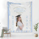 Blue Bow Floral Graduation Tapestry