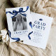 Feiern Sie den Meilenstein Ihres Absolventen mit unseren schlichten und eleganten Abschlussfeierlichkeiten. Jede Karte weist einen auffallenden, weißen Hintergrund auf, der von einem Foto Ihres Abschlusses gerahmt durch einen trendigen, blauen Wasserfarbenbogen und ein Band geschmückt wird. Dreh es für die Party-Informationen, die leicht zu personalisieren sind.
