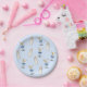 Ein Tini One ist einer der Teller der Blue Martini Babydusche - Adorable Paper Teller für eine Babydusche. Mit Aquarellbildern von schmutzigen Martinis mit zwei Oliven und einem Coquette blauen Bogen und einer Babyflasche in einem zufälligen Muster-Design auf einem hellblauen Hintergrund. Ideal für eine Babydusche zum Thema Martini oder eine Babydusche zum Thema Cocktail.