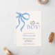 The minimalist layout and classic typography add a refined touch, while the soft blue tones make it ideal for a baby boy shower or a gender-neutral celebration. The airy background allows the bow to shine as the centerpiece, giving the invitation a modern yet timeless aesthetic.