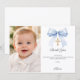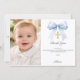 Blue bow photo boy gold cross Baptism Dankeskarte