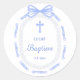 Blue Bow Ribbon Frame Taufe Runder Aufkleber