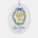 Blue Bow Watercolor Wreath Grandmillenial Keramik Ornament