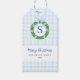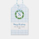 Dress up your holiday presents with this elegant Blue Bow Wreath Christmas Gift Tag. Featuring a classic blue gingham background and a beautifully illustrated wreath tied with a soft blue ribbon, this preppy grandmillennial design adds a timeless and charming touch to every gift.