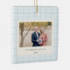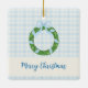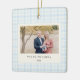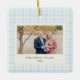 Blue Bow Wreath Gingham Photo Christmas Keramikornament