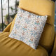 Boho und rustikales Kissen mit handgezeichneter Abbildung von Bögen und Blume in blauen Farben.