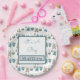 Adorable "It's A Boy"-Design mit einem blauen und grauen Baby-Thema wiederholt Muster: Niedlicher Teddybär, Herzbib, Socken, Babykleidung hängt an einer Wäscheleine. Drücken Sie einfach die Registerkarte "Personalisieren", um den Namen Ihres Kindes hinzuzufügen. Sie können den Schriftart, die Farben, den Text ändern.