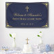Ein religiöses Design für die erste Gemeinschaft eines Jungen. Der Hintergrund ist marineblau. Es gibt ein Imitat Goldfolie Vintag Rahmen und (Imitate) goldenes Kreuz über dem Text. Die Meldung "Welcome to [Name]'s" wird in einem eleganten kalligrafischen Skript geschrieben, der Erholung in caps. Der gesamte Text ist golden. Der Vintage, verzierte Rahmen basiert auf einer antiken französischen Buchbinderei von Georges Mercier (1885-1939) - Madame de Maupin von Theophile Gautier, Ausgabe 1911, jetzt öffentlich zugänglich.