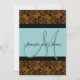 Blue Brown Damask Monogram Wedding Einladung