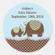 Niedlicher Elefant & Baby Elefant Babyduschaufkleber mit einem süßen, kleinen Baby & Mama Elefant Set auf blauem Hintergrund mit braunem Polka gepunktetem Akzent. Perfekter Aufkleber für Babyfavoriten oder Einladungen für Umschlag Aufkleber & Geburtshinweise! Entsprechende Einladungen, Geburtsankündigungen, Briefmarke und Dankeschön-Notizen finden Sie in unserem Shop unter www.celebrateitinvites.com. ©Chi Chi Erinnerungen