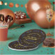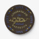 Diese modernen, eleganten Teller sind perfekt für Ihr Party. Sie haben einen Dreieck und Platz für Sie, um den Namen und das Unterrichtsjahr des Absolventen hinzuzufügen. Das Wort "Graduate" ist in kursiver Typografie mit einem Imitat goldstrukturierten Look geschrieben. Die Erholung des Textes ist goldgelb und blau auf dunkelbraunem Hintergrund.